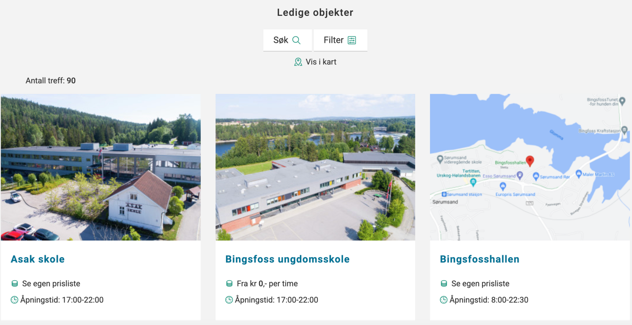 Merk at du kun har tilgang til lokalene via kommunens utleieside, de vises ikke på bookup.no.