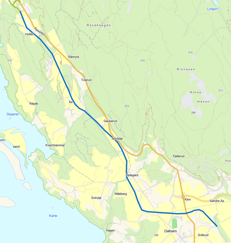 Fra Dalen renseanlegg (MIRA) til Holtet: